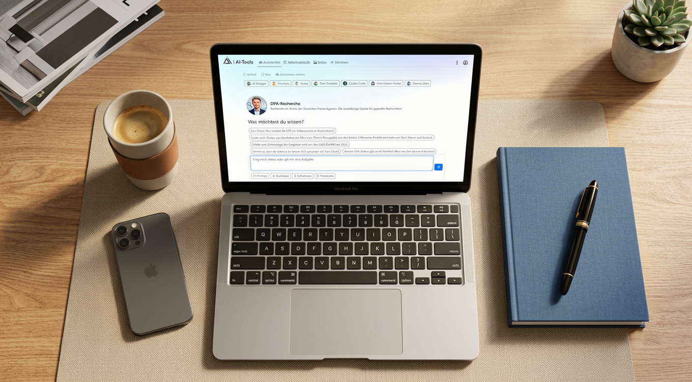 Jede Redaktion kennt das Szenario: Ein Thema ploppt auf, die Deadline rückt näher, und gleichzeitig müssen Fakten gecheckt, Hintergründe recherchiert und Zitate verifiziert werden. Wer dabei von Tab zu Tab springt - DPA-Portal, Google, Nachrichtenarchive, Wikipedia - verliert wertvolle Minuten. Minuten, die im Redaktionsalltag fehlen.